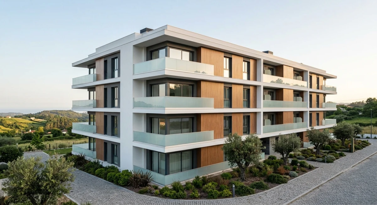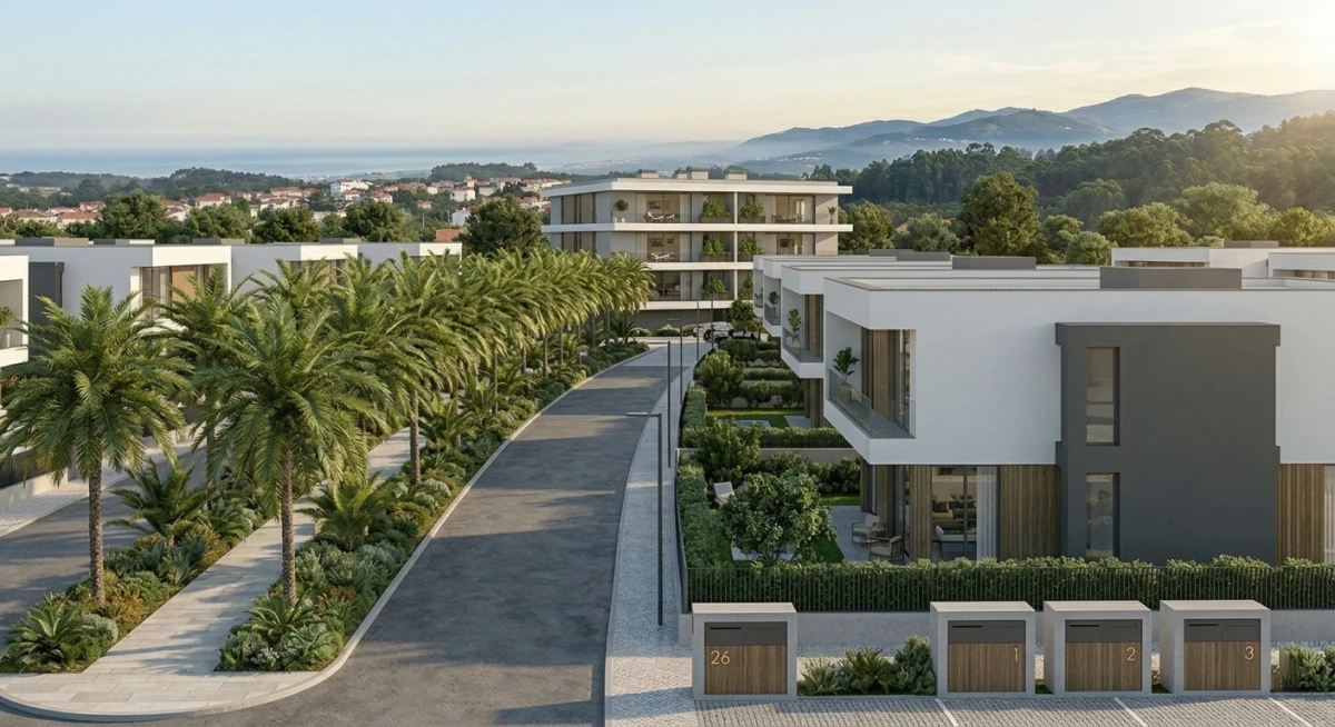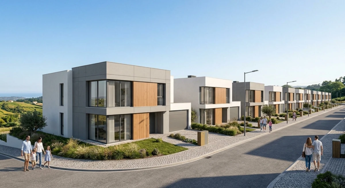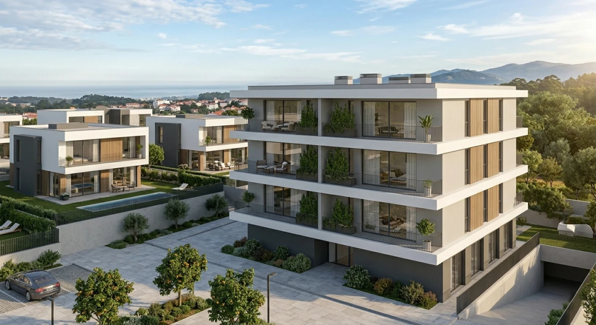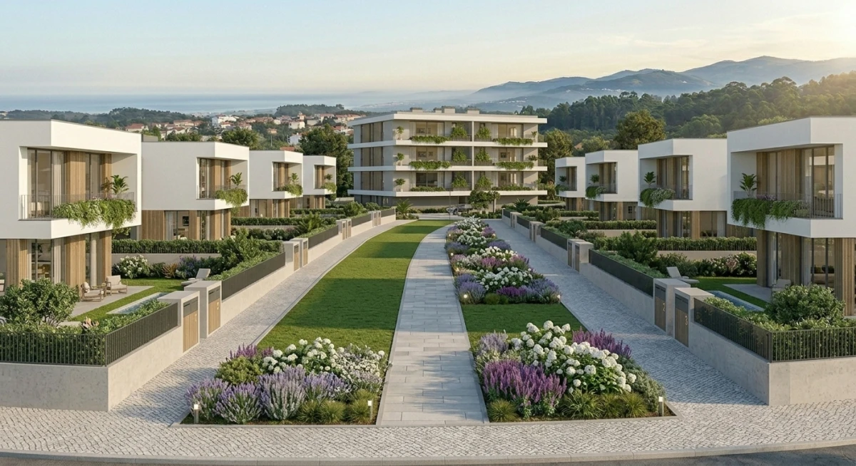 ABC»»11.474m2, distribuídos entre prédio multifamiliar com 12 fogos (abc 2700m2) e urbanização com 26 moradias (abc 8774m2).